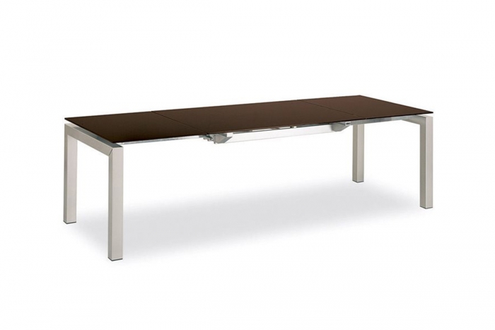 Tavolo modello AIRPORT, dalla struttura in metallo e piano in vetro di forma rettangolare. Super allungabile.