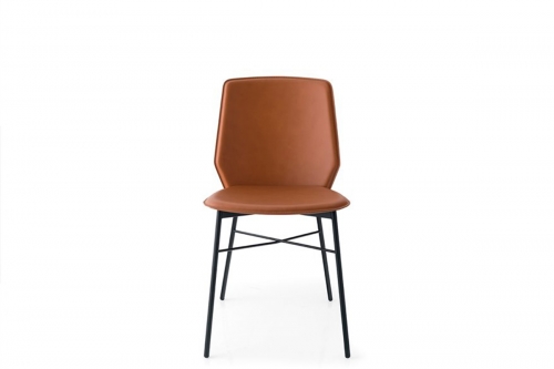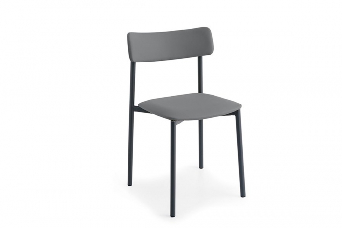 Sedia NEW YORK: struttura in metallo e sedile/schienale imbottiti e rivestiti. Base dalla forma a slitta.