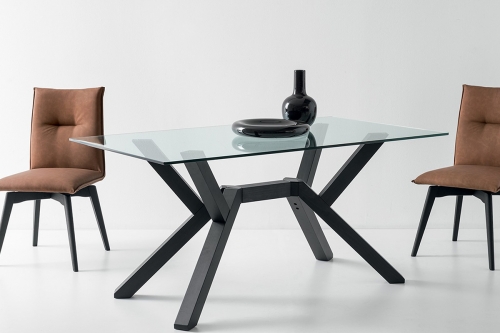 Per il tavolo BARON è possibile scegliere tra un piano in ceramica e un piano in vetro temprato, mentre la struttura e le gambe sono in metallo.