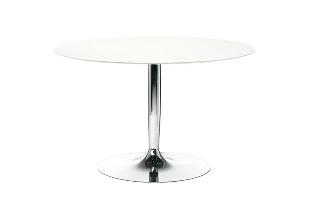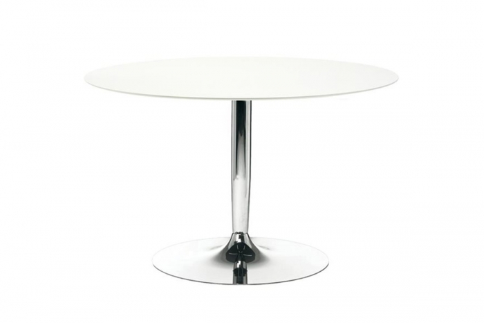 Tavolo modello PLANET con basamento centrale a colonna. Piano rotondo.