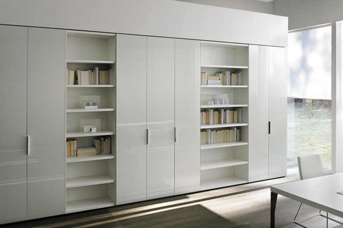 L’anta Vitria, disponibile in tipologia battente o scorrevole, è dotata di profilo laterale Ala che funge da maniglia, proposto in tre dimensioni: a tutta altezza, medio o piccolo.