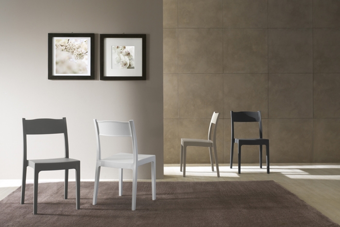 Monoscocca impilabile in polipropilene, disponibile in diversi colori.